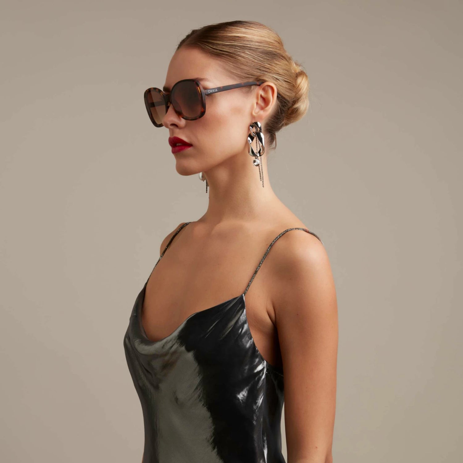 ANNA is een voorgemonteerde vlinderzonnebril met een zacht aanvoelend frame en overlappende lenzen.