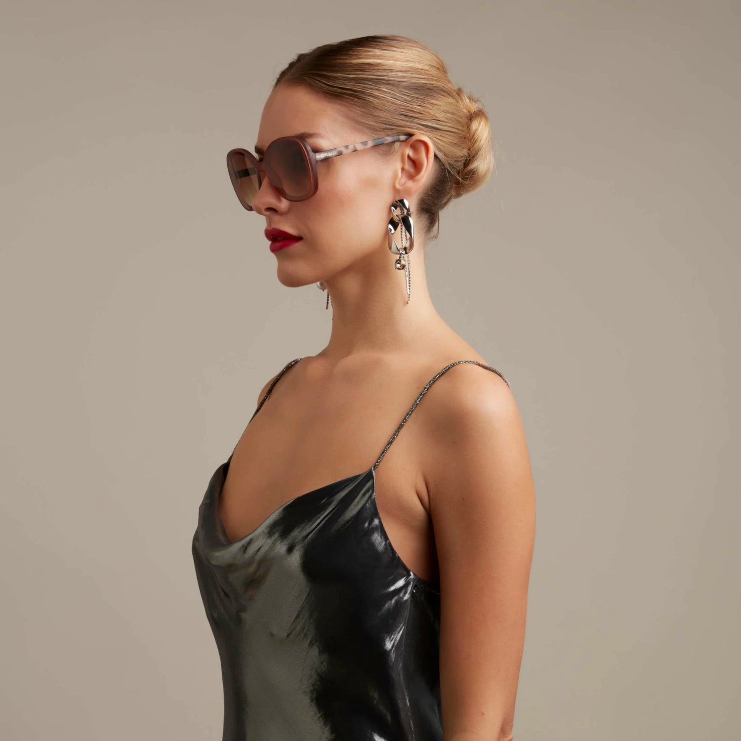 ANNA is een voorgemonteerde vlinderzonnebril met een zacht aanvoelend frame en overlappende lenzen.