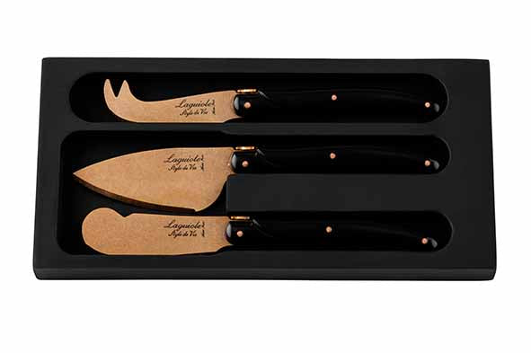 Met de Laguiole Style de Vie kaasmessen wordt het snijden van uw kaas een feestje. De set bestaat uit 3 verschillende kaasmessen.