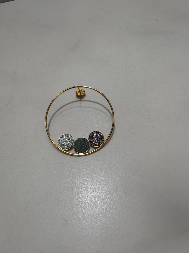 Oorringen ingelegd met zwarte, cosmic bruin en rose gouden lamsleer confetti.