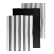 Gemaakt van 100% katoen, bevat de set een handdoek met fijne strepen, één met een gewafelde structuur en één met brede strepen.