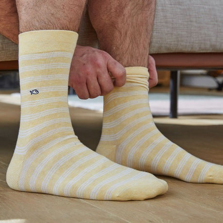 SOKKEN FIJNE STREPEN - GEEL/WIT
