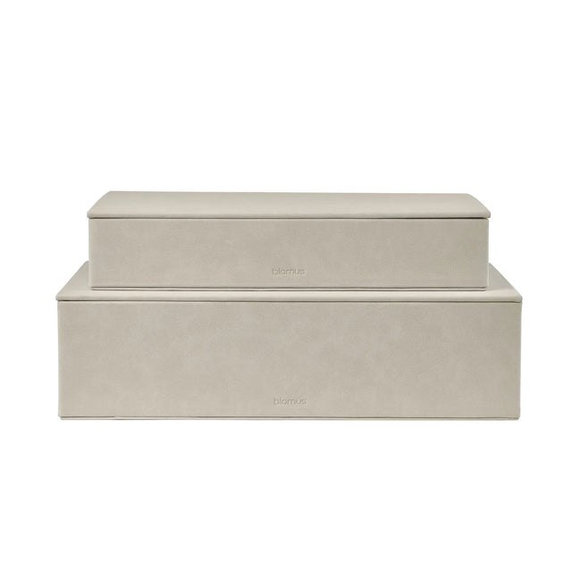 Berg uw kantoorbenodigdheden stijlvol op, bewaar sieraden en cosmetica of verzamel badkameraccessoires op één plek. De boxset bestaat uit twee boxen van verschillende groottes die afsluitbaar zijn met een deksel.