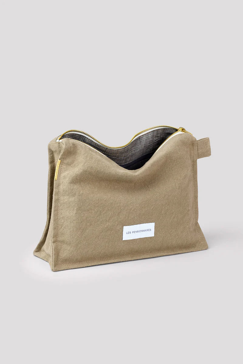 Deze toilettas voldoet aan alle eisen van het ideale accessoire: een dikke katoenen canvas van hoge kwaliteit, een gecoate voering.