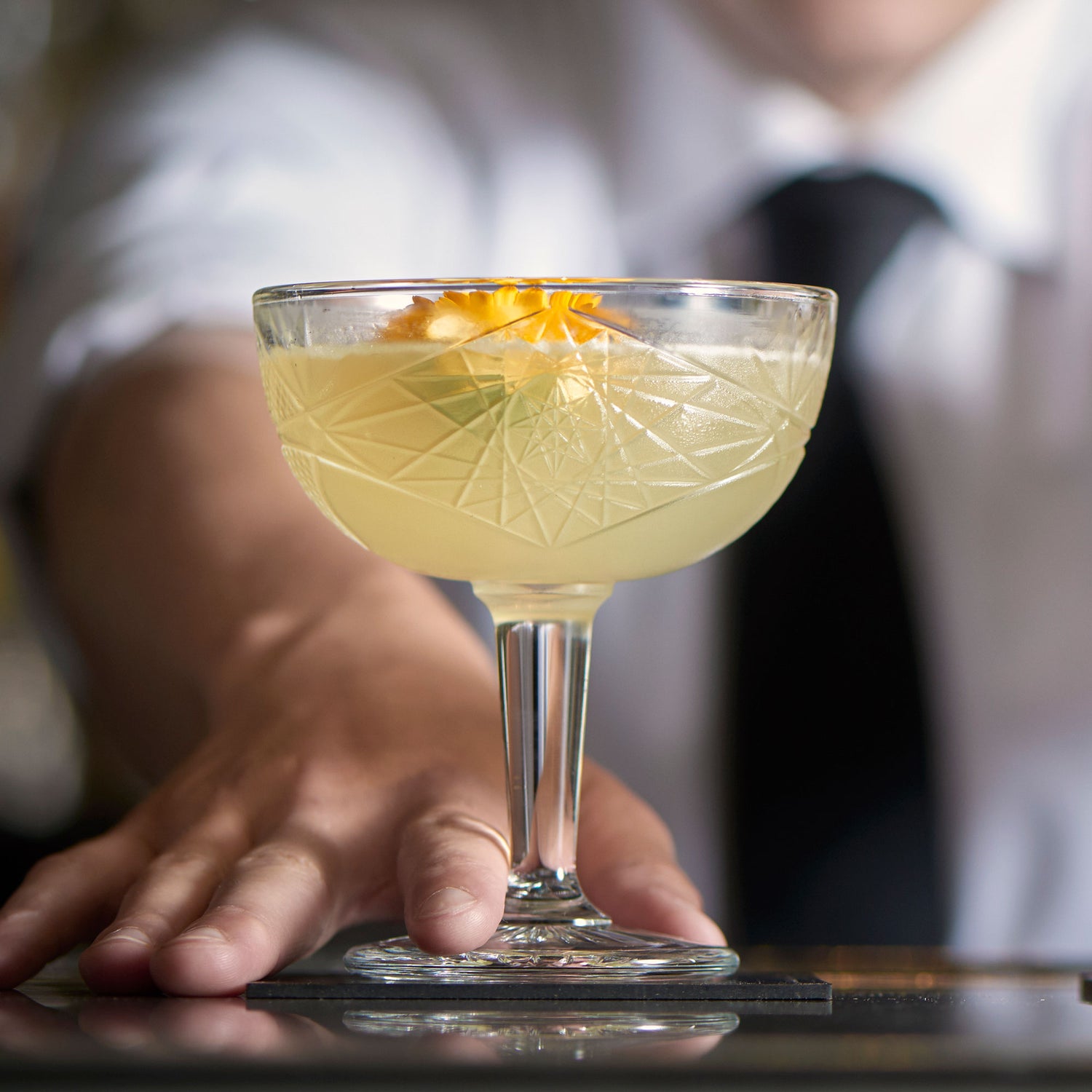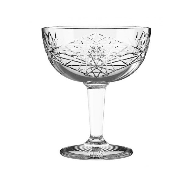 Deze cocktail- of champagnecoupe is een echte stijlzetter met retro allure en een stevig ontwerp, bijzonder geschikt voor intensief gebruik.